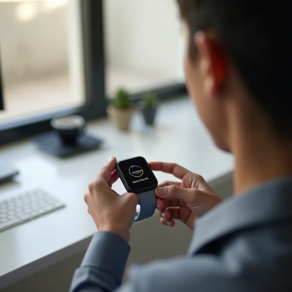 تعد البطارية المشحونة بالكامل ضرورية قبل بدء عملية إعادة الضبط. ضمان وجود شحنة بطارية لا تقل عن 50٪ يمنع إيقاف الساعة أثناء العملية، مما قد يؤدي إلى مشاكل برمجية أو عمليات إعادة ضبط غير مكتملة. إذا لزم الأمر، ضع ساعتك على الشاحن حتى تكون مشحونة بشكل كافٍ.