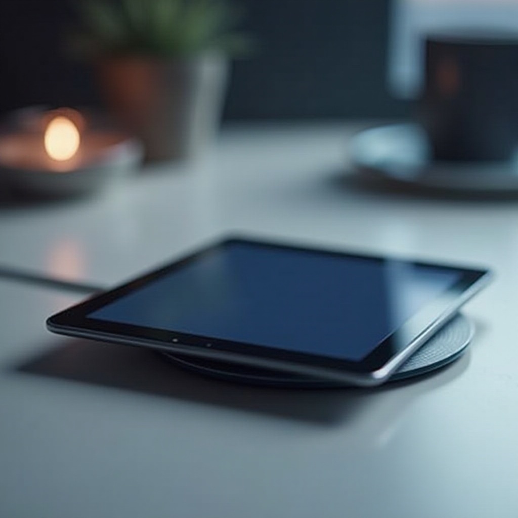 الشحن اللاسلكي، باستخدام معيار Qi، ينقل الطاقة من جهاز الشحن إلى جهازك اللوحي عبر الاقتران التحريضي، مما يمكن من شحن الطاقة بدون تلامس مباشر.